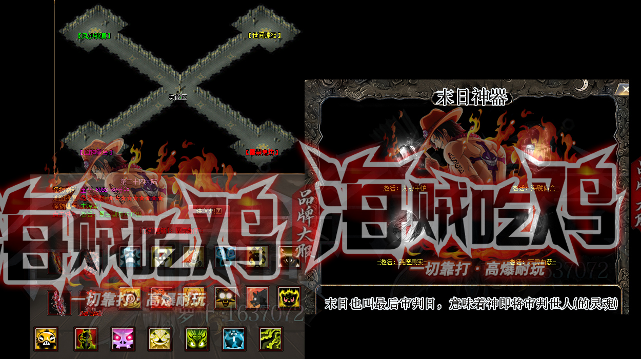 - 【游戏介绍】:|《新海贼吃鸡》原有基础上调高1000倍爆率,缩短BOSS刷新时间,散人一包烟,激情一整天,终极人人都可得