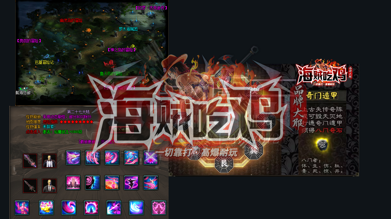 - 【游戏介绍】:|《新海贼吃鸡》本服BOOS种类多,增加了多种BOOS,缩短BOSS刷新时间,都有几率爆出终极。增加打怪乐趣
